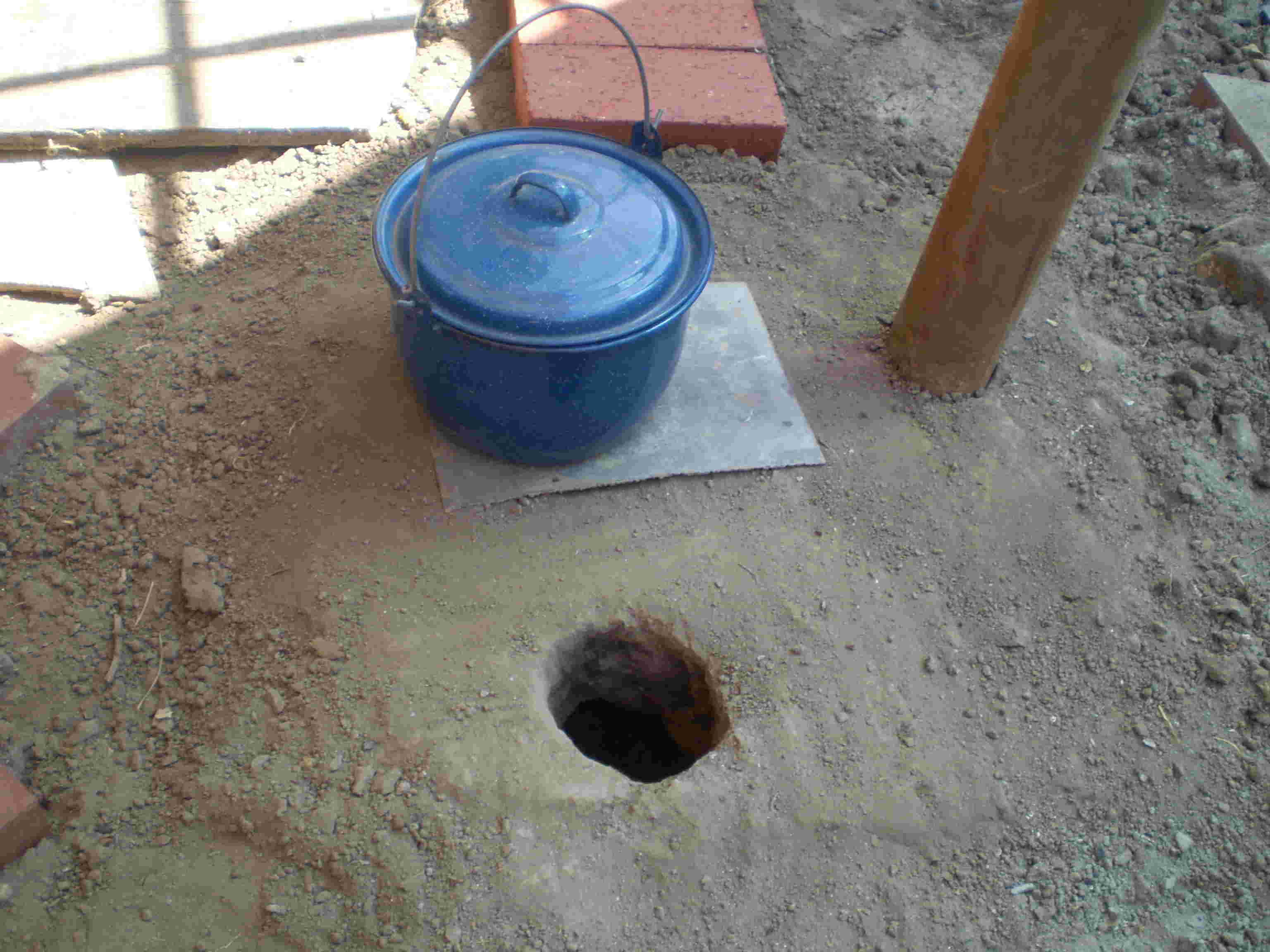 I enlarged the hole over the burn chamber to 4” to make it easier to remove the ashes. This seemed to have no effect on the performance. Next time I'll begin with a 4” fire-chamber hole so I won't rough up my hand while pulling the dirt out in the first place.