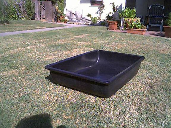shallow sheet-metal pan also painted black. With this cheap simple arrangement, water would still