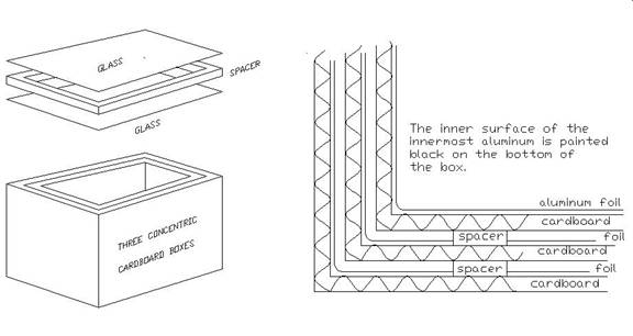 basically three layers of foil-lined cardboard, with a double layer of glass over it. Don’t